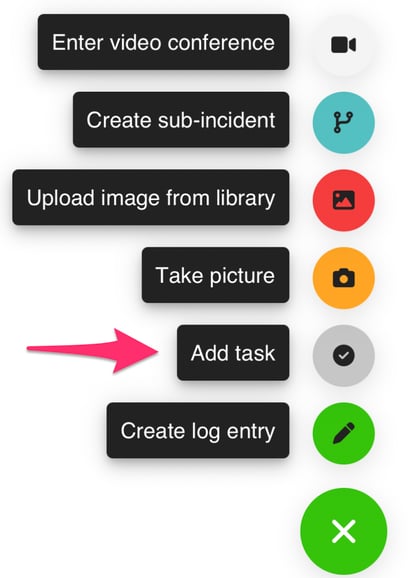When you are in an active log, you can create a task by clicking on the green "action button."