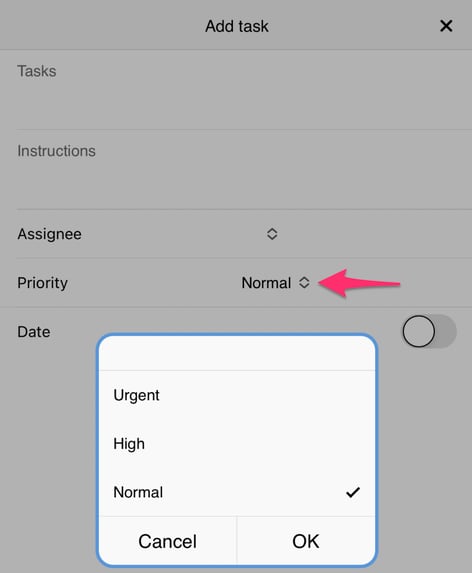 Choose which level of priority the task should be marked as. If you don't select any level of priority, the task will be marked as "Normal".
