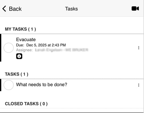 When you are in the open log, click on the menu at the top right of the log. If you have been assigned tasks, the menu icon will also have a badge with the number of open tasks that are assigned to you.