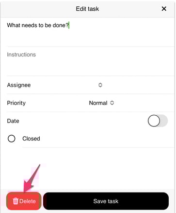 You can quickly delete a task by swiping a specific task - to the left, and clicking "Delete".