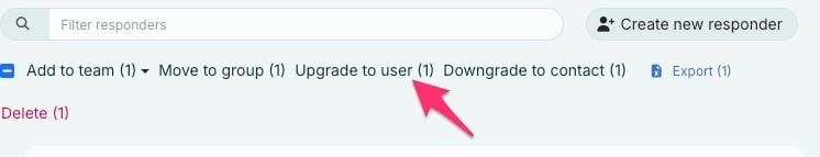 You can upgrade contacts to responders, and responders to users by selecting the person you want to upgrade, as shown in the image below.