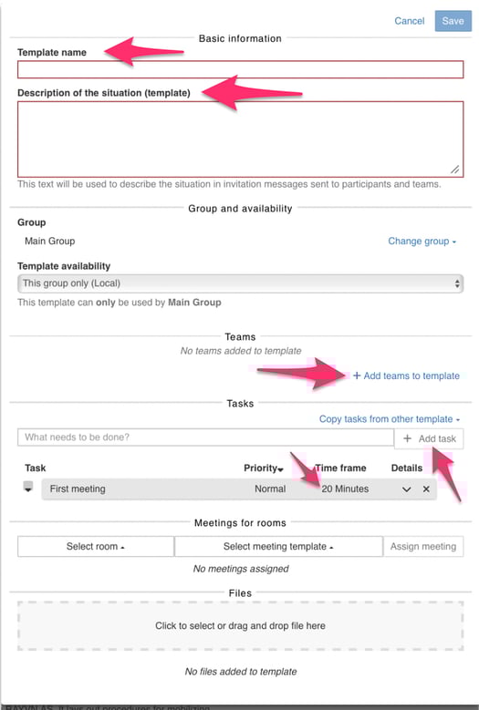 Lastly, you also have the option to add a meeting template to the log template. When a log is started from a log template, a status meeting with your template of choice will be created automatically. This way you can be certain that your team uses the correct meeting template in a specific scenario.
