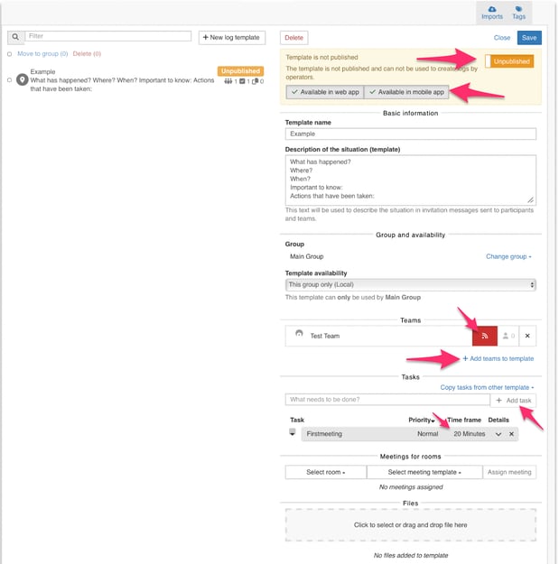 All the information from the template, with the teams and tasks, will automatically be added to the new log. When creating a new log based on one of the templates, you will be able to make changes to the predefined list of teams and tasks before you actually start the log.