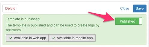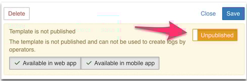 - Set whether the template should be published/unpublished, in the web app and mobile app.
