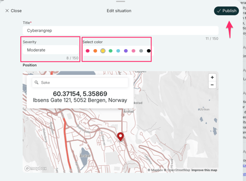 From here you can edit name and color of severity. Click "publish" when you are done.