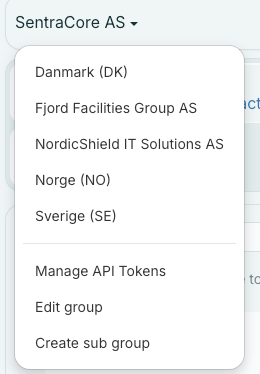 Here you can see an example of a hierarchy. SentraCore AS is the main group with different sub goups under. You can edit groups and create new sub group.