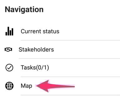 To access the map in the mobile app, tap on the menu icon on the top right corner. Then choose "Map".