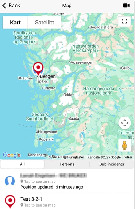 Below the map, you can see a list of persons and incidents that are involved in the specific log. If you only want to see either Persons or Incidents on the map, you can enable the filter. The filter is set to display All by default.