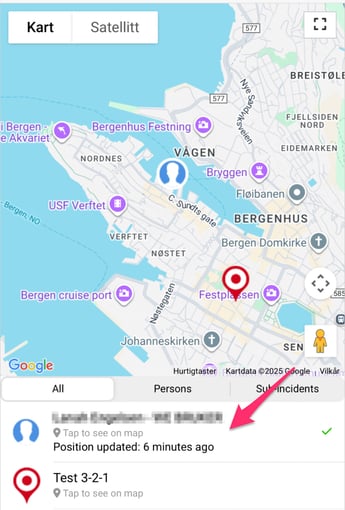In the list, you can also tap on the person or incident. This will focus the map on the specific resource you want to zoom in to. This might be convenient if there are lots of resources on the map, and you just want to see the location of a specific resource.