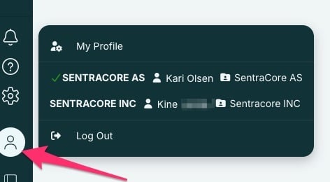When you log in to RAYVN on the web app, you will now be able to switch between the organizations that you have access to. By default, you will be logged in to the last used "organization". In the lower-left corner, you can click on the person icon. Here you will see the organization that you are logged in to.