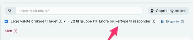 I dette eksempelet klikker du på "Endre brukertype til responder".