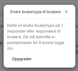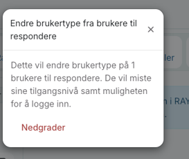 Dette vinduet vil da dukke opp — klikk "Nedgrader" for å endre fra bruker til responder. Ville du endret fra responder til bruker ville det vært "Oppgrader".