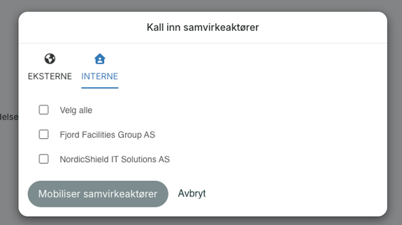 Etter du har trykker på "Mobiliser samvirkeaktører" vil du få opp dette: