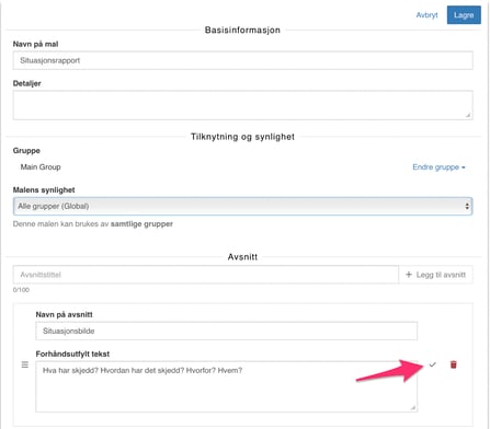 Når du er ferdig med å fylle inn de feltene du ønsker, klikk "Lagre" for å lagre rapportmalen.