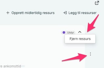 Du kan også fjerne ressurser fra loggen ved å trykke på de tre prikkene på høyre side av ressursen, og velge "Fjern ressurs".