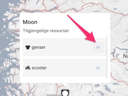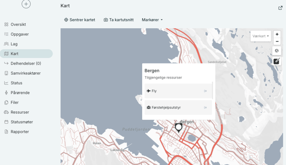 I aktive logger, vil du kunne se steder med ressurser i kartet. Brukeren vil kunne klikke på et sted, og derfra se hvilke ressurser som er tilgjengelige, og deretter mobilisere dem derfra.