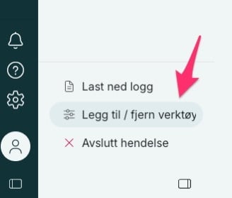 Det er også alltid en mulighet til å legge til ressurser i enkelt logger, om du ikke ønsker å aktivere "Ressurser" på alle logger som vist over. Det kan du gjøre med å gå inn i en aktiv logg, å trykke på "Legg til/ fjern verktøy" nede i venstre hjørne. Her vil du få opp loggverktøyet slikt som over, her må du aktivere ressurser.