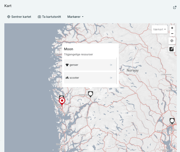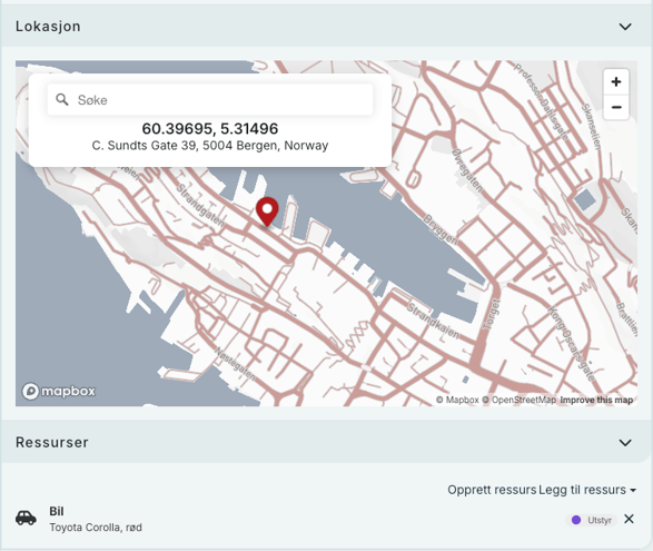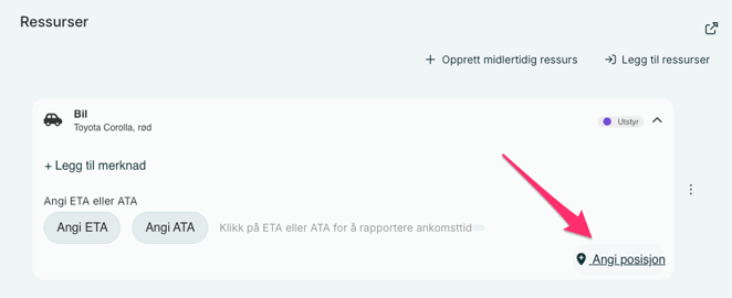 - Sted: Ressurser kan også knyttes til steder du har opprettet i kontoinnstillingene dine. Dette gjør det enkelt å se hvor de befinner seg i kartet.