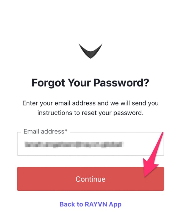 Du må skrive inn den samme e-postadressen som er knyttet til din bruker i RAYVN. Dersom du skriver inn en annen e-postadresse, vil du ikke få tilgang til å endre passordet.